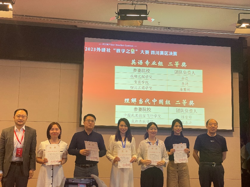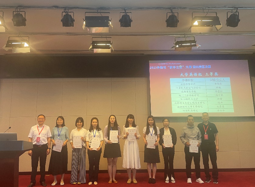 5月27日,2023年外研社“教学之星”大赛四川省决赛在四川师范大学举行,此次省级决赛一共有34支队伍参加,英语专业组、理解当代中国组18组,大学英语组16组。经过巅峰“论剑”,我校beat365官方网站的两支教师团队,陈雪婷老师和李清老师(团队成员:周丹强玉、邹佳静、杨睿)凭借扎实的授课功底、出色的课程设计荣获本次比赛理解当代中国组二等奖,钟璇老师、王韵老师(团队成员:庄馨)也获得了大学英语组三等奖的优异成绩。
