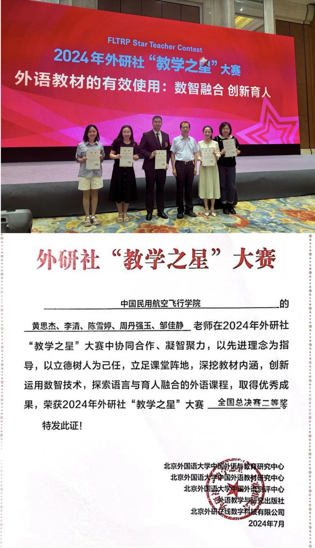 7月28日,2024年外研社“教学之星”暑期大学英语组教学比赛在安徽合肥圆满落幕,我校beat365官方网站教师黄思杰、李清(团队成员陈雪婷、周丹强玉、邹佳静)凭借出彩的课程设计、扎实的语言功底荣获2024年外研社“教学之星”全国总决赛二等奖的优异成绩,为本次四川省大学英语组晋级高校所获得的最佳名次。