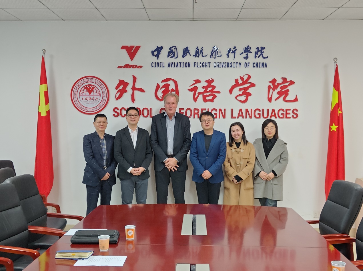 2023年11月29日上午,Speexx公司全球总裁Armin Hopp先生一行到访中国民用航空飞行学院(以下简称中飞院)beat365官方网站,与beat365官方网站肖凌院长及大学英语第二教研室的主要负责人周丹强玉、邹佳静老师就Speexx高校项目在飞行学生的推广和应用情况进行了热烈的交流。