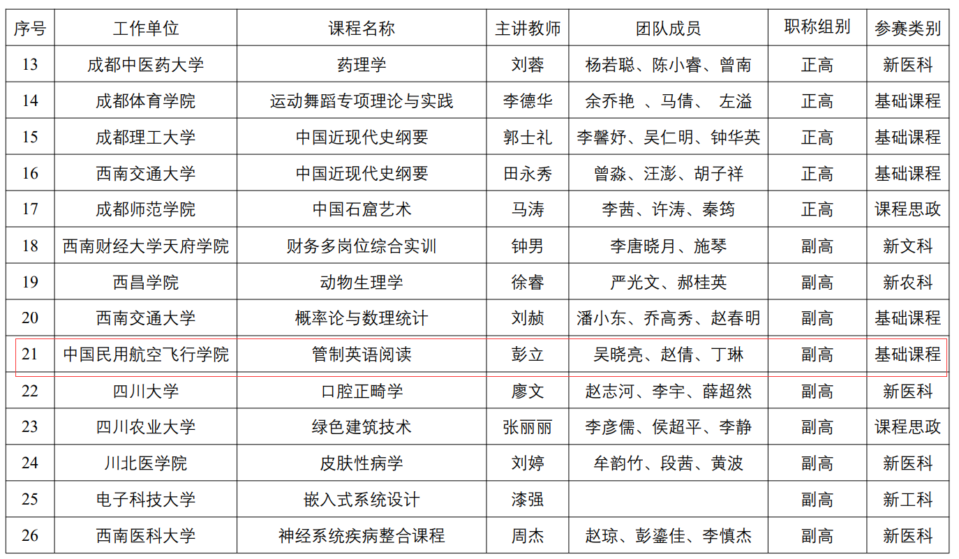 近日,四川省教育厅公布了《第三届四川省普通本科高校教师教学创新大赛获奖名单的通知》,beat365官方网站彭立副教授教学团队领衔的管制英语阅读课程荣获副高组二等奖!教学团队还包括吴晓亮老师,赵倩老师以及丁琳老师。