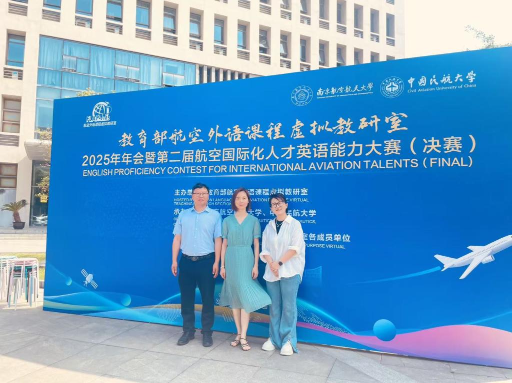 本网讯 beat365官方网站 丁琳报道:为深化航空外语教学改革,推动航空国际化人才培养,beat365官方网站陈华妮副院长、李君华和丁琳老师于5月16日至18日应邀赴江苏南京,参加由教育部航空外语课程虚拟教研室主办,南京航空航天大学与中国民航大学承办的“教育部航空外语课程虚拟教研室2025年年会暨第二届航空国际化人才英语能力大赛(决赛)”。来自全国多所高校的专家学者齐聚一堂,围绕航空英语教学创新、测试体系优化及国际化人才培养等议题展开深入交流。