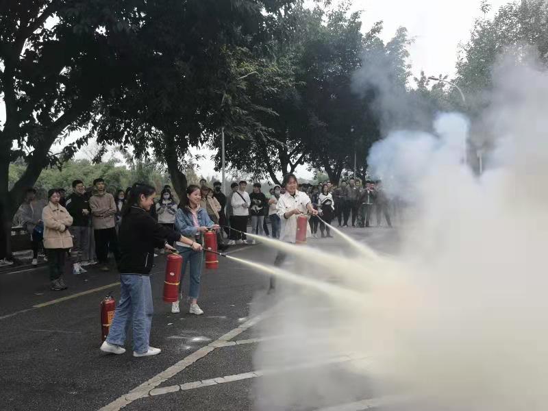 此次消防演练意在加强全院师生在消防安全上的自我救助能力,加强安全教育,提高学生消防安全防范意识。演练第一项为疏散逃生,当警铃响起时,烟雾顿时弥漫宿舍楼道,所有同学闻铃即动,用湿毛巾捂住口鼻,迅速离开宿舍,快速且有序地安全疏散到宿舍楼下空旷区域。
