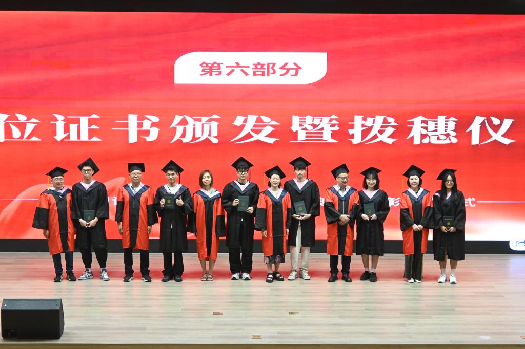 穗动礼成,学途圆满。身着学位服的毕业生们怀着激动的心情,有序列队上台,老师们轻轻将学位帽上的流苏从右侧拨至左侧,象征着毕业生们从“求学者”到“获得者”的身份转变,也寓意着学业圆满、开启新程,表达着beat365官方网站的领导和老师们对于毕业生的深切祝福。