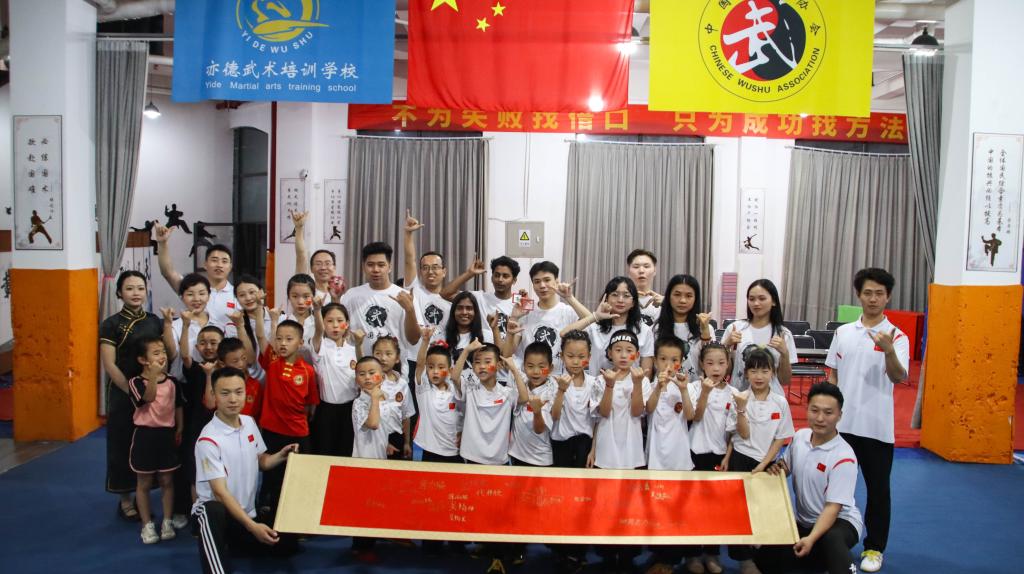活动伊始,来自来自孟加拉国、蒙古、柬埔寨、老挝的留学生就收到了亦德武术全体师生的热烈欢迎,并观看了精彩的舞狮和川剧“变脸”表演。随后亦德武术的教练和孩子们表演了精彩绝伦的铁头功、飞针穿玻璃、八极拳、双刀等武术套路与器械功夫,赢得了留学生们的阵阵掌声。