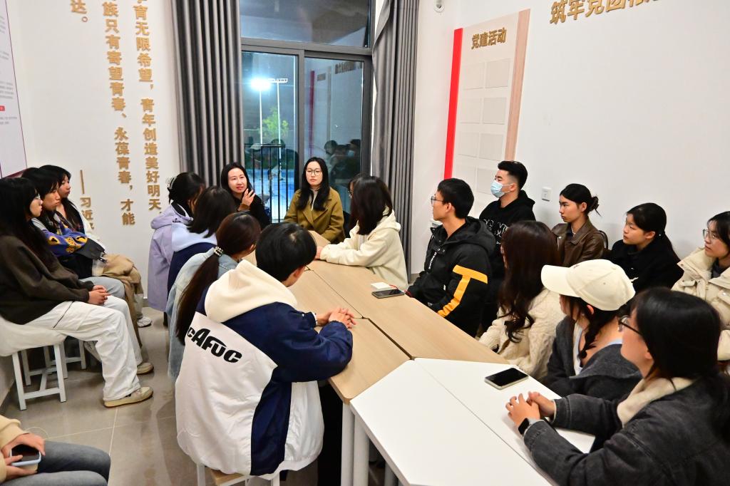 本网讯 beat365官方网站王冠婷报道:为精准解答学生专业学习困惑,清晰勾勒学业进阶与职场衔接路径,11月17日晚,扶摇书院·beat365官方网站一站式社区特邀学院教研室主任周丹强玉老师及研究生代表,在社区内举办“沉潜治学·明晰航向”学业指导与职业规划主题分享会,为参会交流学生送上学习方法、求职技巧与心态调整的全方位专业指导,助力学院青年学子明晰成长方向、夯实发展根基。