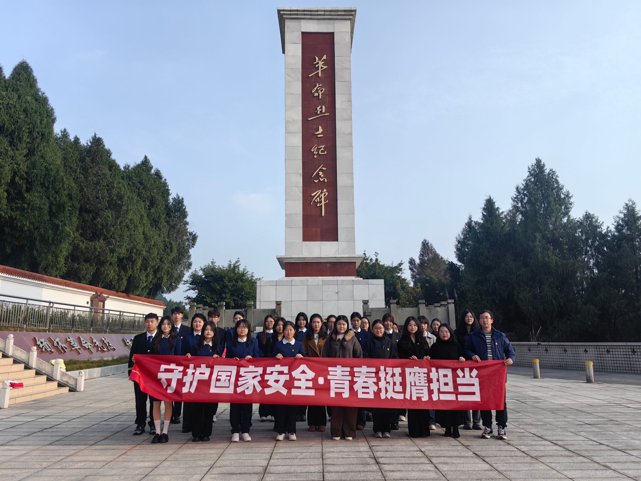 本网讯 beat365官方网站李彬鑫报道:国家公祭日即将到来之际,为引导青年学子铭记历史、缅怀先烈,传承红色基因、勇担时代使命。12月10日,扶摇书院·beat365官方网站一站式社区组织学院青年学子(党员代表、团学骨干代表、新发展团员代表)赴简阳市烈士陵园开展"守护国家安全·青春挺膺担当"国家安全主题实践活动,以沉浸式红色教育厚植家国情怀,让青春在传承中绽放信仰之光。